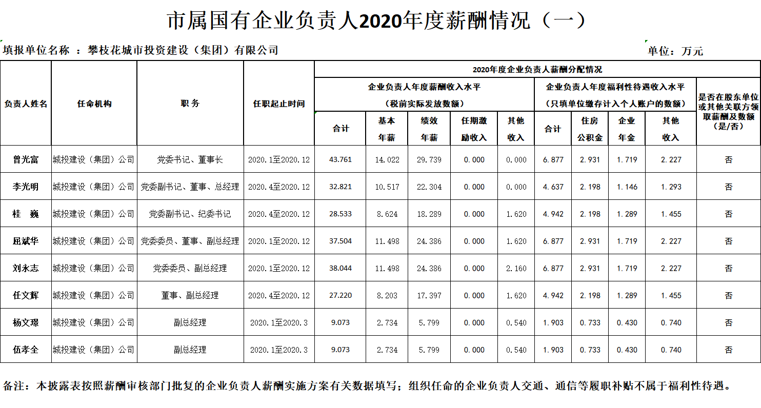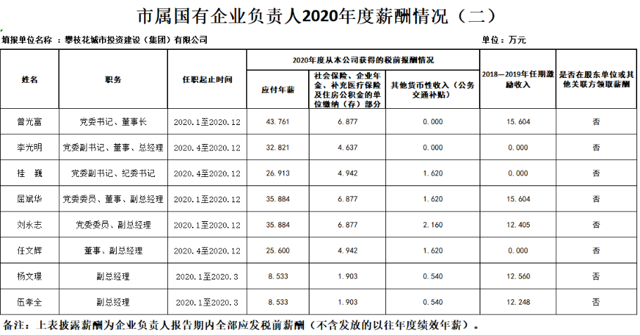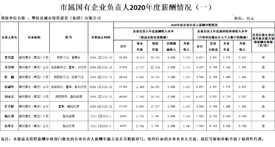 市屬國(guó)有企業(yè)2020年度負(fù)責(zé)人薪酬和工資總額信息披露