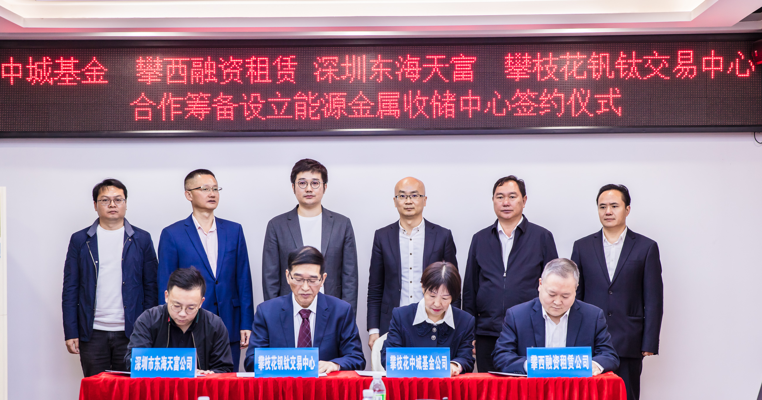 簽約儀式上,城建交通集團2家子公司——攀枝花中城股權(quán)投資基金管理有限公司、攀西融資租賃(上海)有限公司與天府商品交易所有限公司2家控股企業(yè)——攀枝花釩鈦交易中心有限公司、深圳市東海天富投資有限公司,共同簽署了《合作籌備設(shè)立能源金屬收儲中心協(xié)議書》,4家企業(yè)將發(fā)揮各自專業(yè)領(lǐng)域優(yōu)勢,充分利用手頭資源,合作設(shè)立能源金屬收儲中心,并依托釩鈦交易中心平臺,共同籌備組建國內(nèi)首支能源金屬收儲基金,圍繞綠色能源產(chǎn)業(yè)鏈發(fā)電、儲電所需的釩、鈦、鋰、鎳等稀有金屬,用收儲、拋售的方式進行投資。此外,基金還將用于投資開展以釩液流電池為代表的綠色儲能設(shè)備、電池組件、電解液等租賃業(yè)務(wù)的設(shè)備租賃公司或介入租賃業(yè)務(wù),通過融租方式降低儲能設(shè)施一次性建設(shè)成本,有效促進綠色儲能電池項目廣泛推廣。