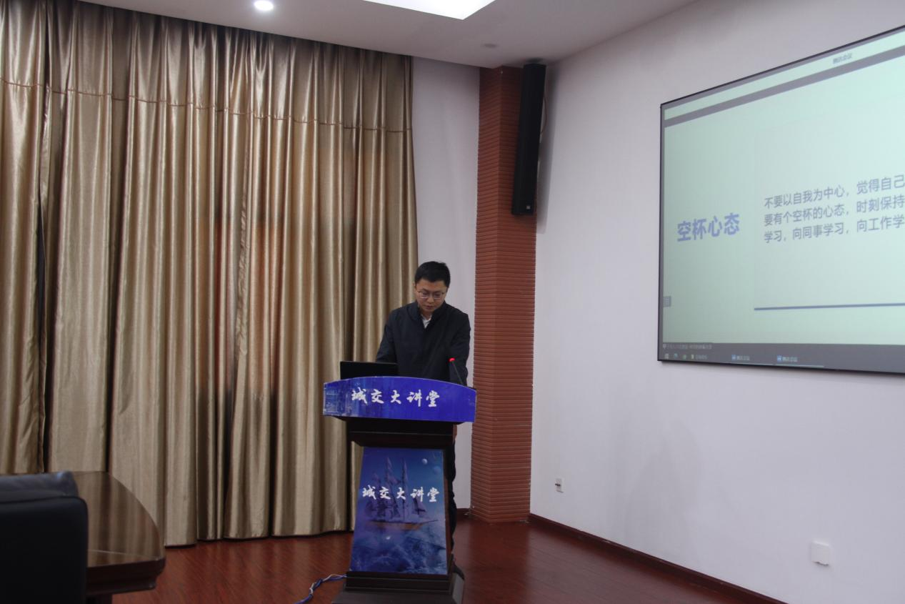12月5日上午,城建交通集團第十四期“城交大講堂”在集團3樓會議室舉辦。本期講座主題為“樹立良好的職業(yè)心態(tài)”,由集團人力資源中心副主任鐘洋主講。集團領(lǐng)導(dǎo),各部門、中心、子公司負責(zé)人和工作人員共600余人通過線上與線下相結(jié)合的方式參與學(xué)習(xí)。
