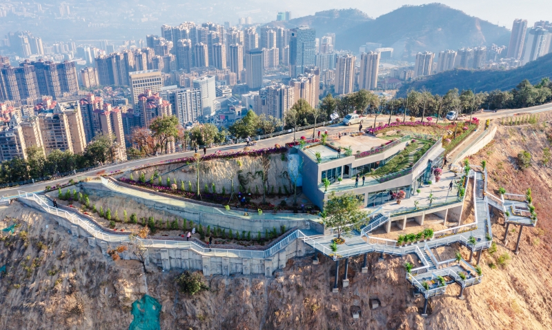 東華山山地體育公園依托中心城區(qū)豐富的山景、水景、城市夜景等景觀資源,著力打造運(yùn)動和休閑相融合、人文和自然相輝映的山地體育公園,進(jìn)一步推動公園城市建設(shè),布局“城市綠心”,營造美好人居環(huán)境。示范段已建成“鋼的亭”休閑驛站、伴山咖啡景觀節(jié)點(diǎn)和部分復(fù)合綠道。